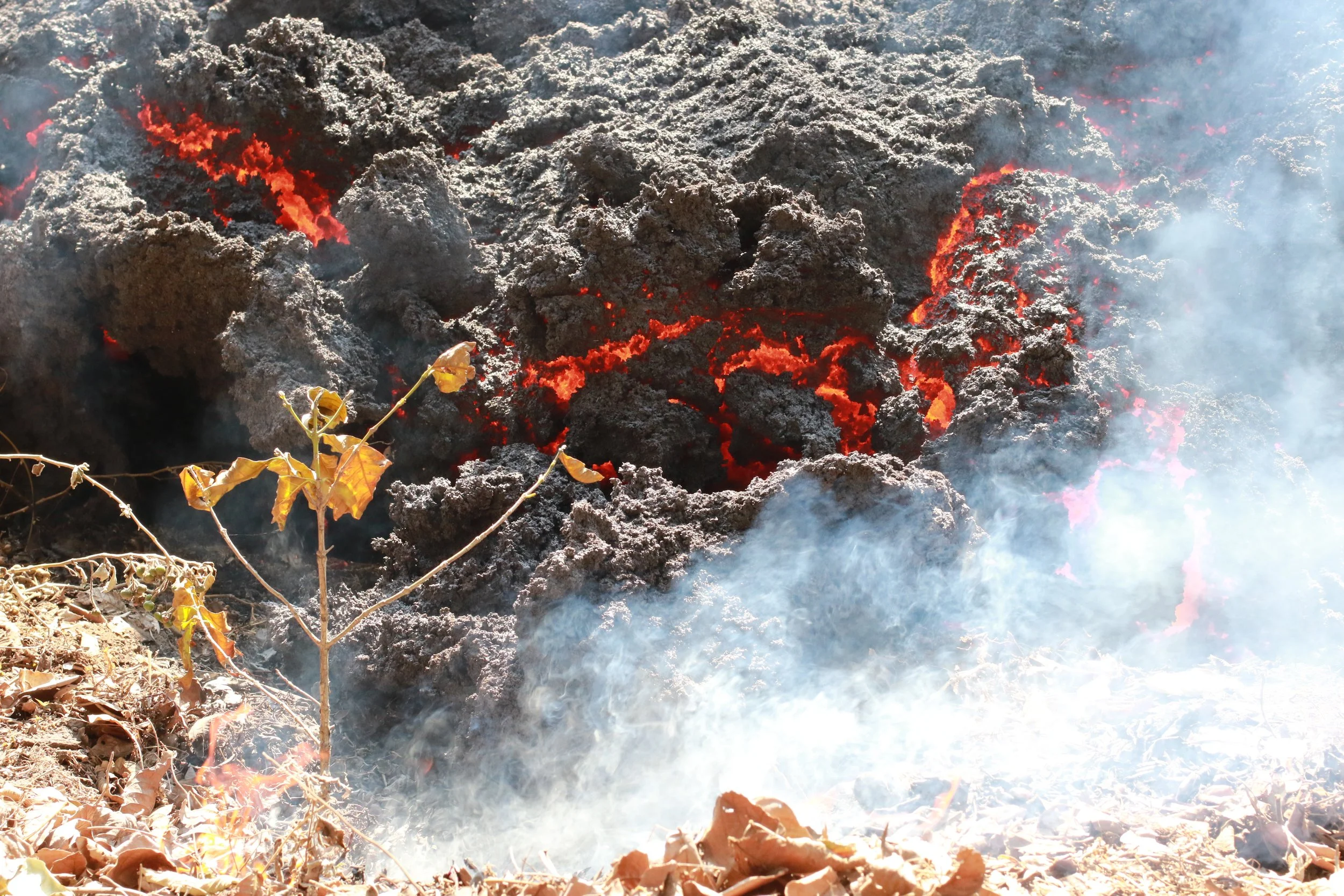 To express without a word and in an instant the might and power of the earth, a raging volcano floods the highland oak forest with fire.